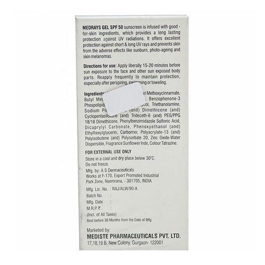 Medrays Spf 50 Sunscreen Gel, 75 gm